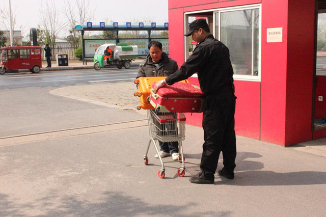 園區(qū)公舍的便民手推車實行24小時服務,住戶隨時可以使用,只需辦理登記手續(xù),用完后歸還即可。目前,園區(qū)公舍共有兩輛便民手推車,每輛車都標有明顯標識,以方便管理。入住員工用完手推車后,基本都能做到及時歸還,方便其他員工使用。