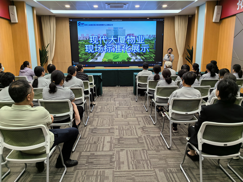 培訓分兩部分,一是認真觀看了蘇州工業(yè)園區(qū)機關事務管理中心物業(yè)服務的標準化視頻,學習借鑒了不同場所的清潔步驟、操作規(guī)程、細節(jié)處理、檢查標準等,強化認真履行“質量至上、安全第一”的工作態(tài)度和職責。二是結合項目實際情況,開展工作場景模擬,保潔人員互相分享心得,交流服務經(jīng)驗,提升服務技能。