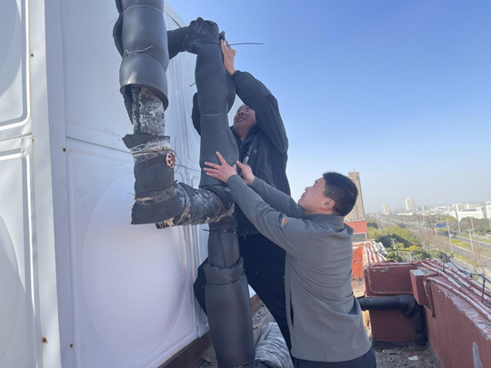 與此同時(shí),常年佇立的戶外設(shè)施也紛紛披上量身定制的“保溫外衣”。工作人員采用專用保溫材料,對(duì)這些設(shè)施進(jìn)行嚴(yán)密封裹與加固,確保在嚴(yán)寒天氣中仍能正常運(yùn)行,有效防范因凍脹、凍裂引發(fā)的供水中斷或消防安全隱患。