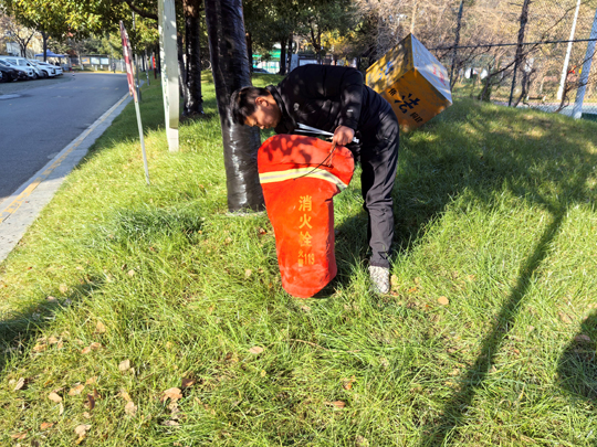 細(xì)心的業(yè)主不難發(fā)現(xiàn),樹(shù)木已悄然穿上整齊的“冬裝”。物業(yè)工作人員有條不紊地對(duì)喬木根部進(jìn)行涂白處理。這層白色“防護(hù)衣”不僅美觀,更是樹(shù)木越冬的“守護(hù)者”——它能有效反射部分陽(yáng)光,減緩樹(shù)干因晝夜溫差過(guò)大而導(dǎo)致的凍裂風(fēng)險(xiǎn),同時(shí)清除樹(shù)皮縫隙中潛藏的害蟲(chóng)及蟲(chóng)卵,為來(lái)年春季樹(shù)木茁壯成長(zhǎng)打下堅(jiān)實(shí)基礎(chǔ)。