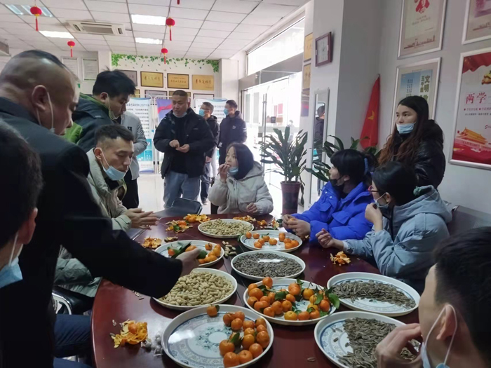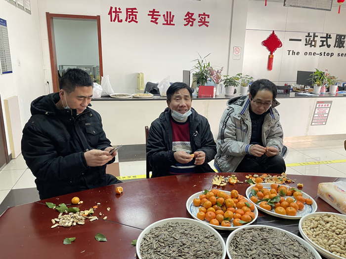 茶話會現(xiàn)場,入住員工們圍坐在一起,一片歡聲笑語,園區(qū)公舍物業(yè)服務(wù)中心洋溢著歡樂祥和的節(jié)日氣氛。大家即興合唱了《難忘今宵》,表達(dá)了節(jié)日的欣喜和對共度美好時光的感慨,以及舉國歡慶佳節(jié)的共感,“難忘今宵,難忘今宵,無論天涯與海角,神州萬里同懷抱”。住在9#樓的陳女士說:“大家圍坐在桌子旁,開開心心地一起唱歌,訴說生活點滴,就像是家庭大聚會,我很享受這次的迎新年茶話會。”