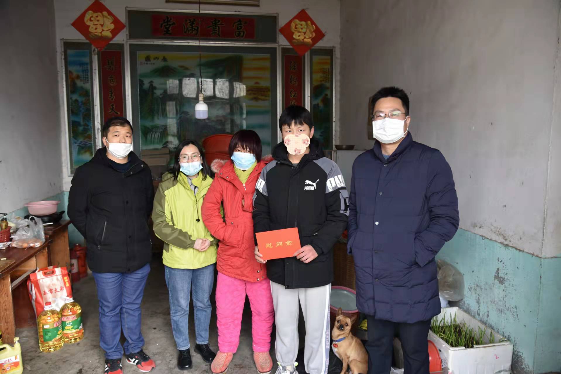 寒冬臘月,新春將至,1月26日上午,建發(fā)公司黨支部書記倪松帶領(lǐng)支部班子和黨員代表到宿城區(qū)支口街道探楚社區(qū)困難學(xué)生家中進(jìn)行走訪慰問,為他們送去節(jié)日慰問品、慰問金,同時(shí)送去了節(jié)日的問候。