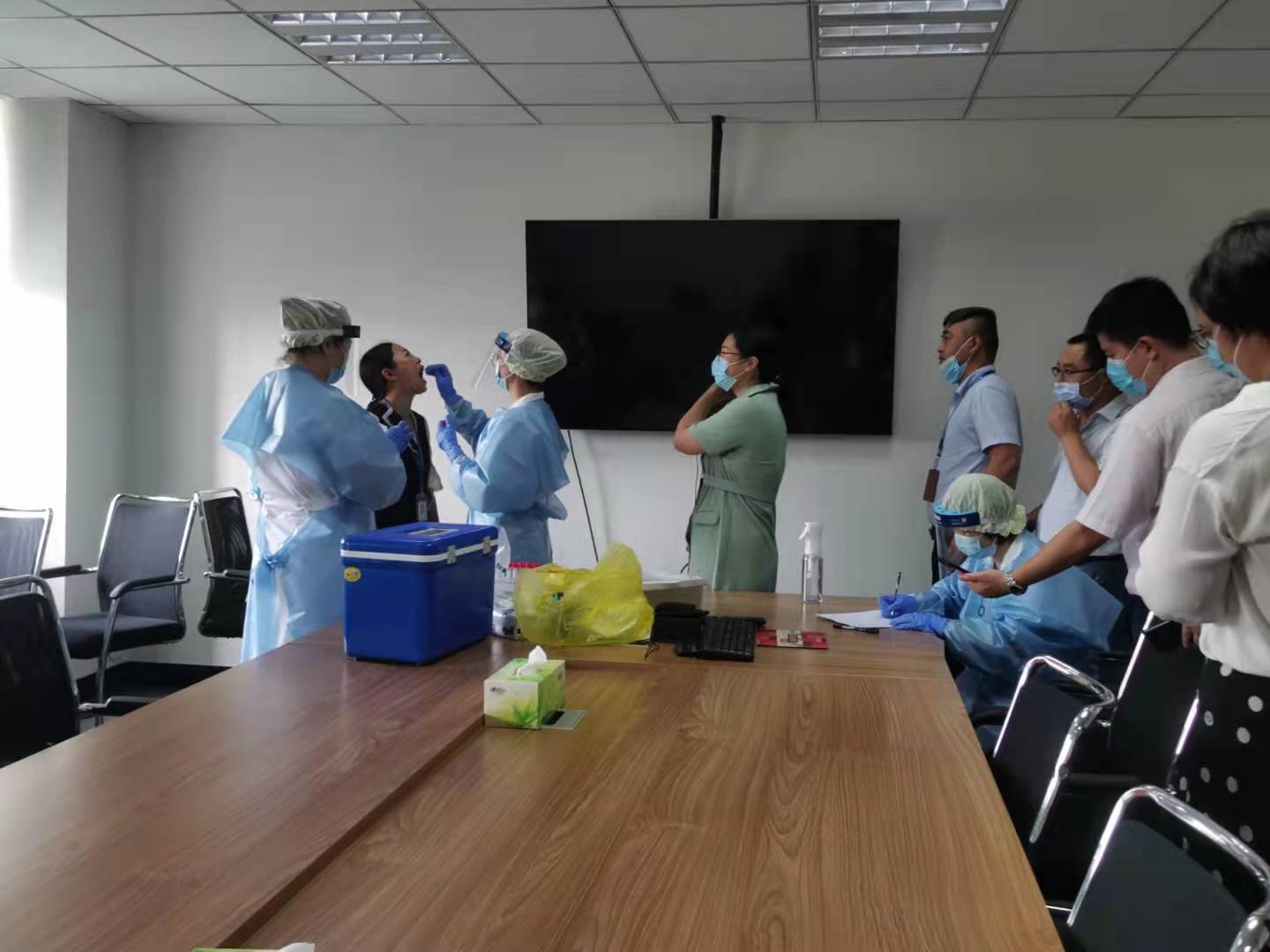 為保證各項(xiàng)工作順利推進(jìn),公司提前部署,邀請兒童醫(yī)院醫(yī)務(wù)工作者開展本次檢測。 檢測采樣現(xiàn)場,醫(yī)務(wù)人員身著防護(hù)服,嚴(yán)格按照檢測采樣要求,控制每批次受檢人員數(shù)量,保持安全距離,避免人員聚集,保障檢測工作高效有序進(jìn)行。按照“愿檢盡檢”的原則,公司在崗員工進(jìn)行了咽拭子測試采樣。