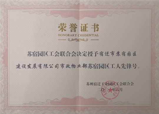 建發(fā)公司市政物業(yè)部榮獲蘇宿園區(qū)“工人先鋒號(hào)”稱號(hào)