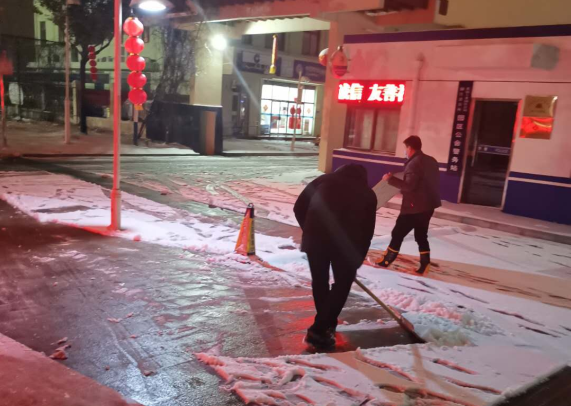 在園區(qū)公舍防疫值守的李佃左說(shuō)道:雖說(shuō)疫情來(lái)了,但大家伙的心是牢牢團(tuán)結(jié)在一起的,這不一看下雪了,擔(dān)心復(fù)工人員上班時(shí)的出行安危,大家伙都忙活起來(lái)啦!當(dāng)晚,建發(fā)公司員工、園區(qū)環(huán)衛(wèi)人員“相約”在轄區(qū)內(nèi)及園區(qū)道路街頭,在嚴(yán)寒中默默堅(jiān)守,與冰雪爭(zhēng)分奪秒,你鏟我掃、撒布融雪劑,井然有序,從容不亂,大家齊心協(xié)力、配合默契,為保障轄區(qū)內(nèi)通暢竭盡全力。在掃雪除冰的同時(shí),園區(qū)公舍集宿區(qū)工作人員仍然堅(jiān)守在執(zhí)勤點(diǎn)執(zhí)勤防控,有序做好各項(xiàng)疫情防控工作。
