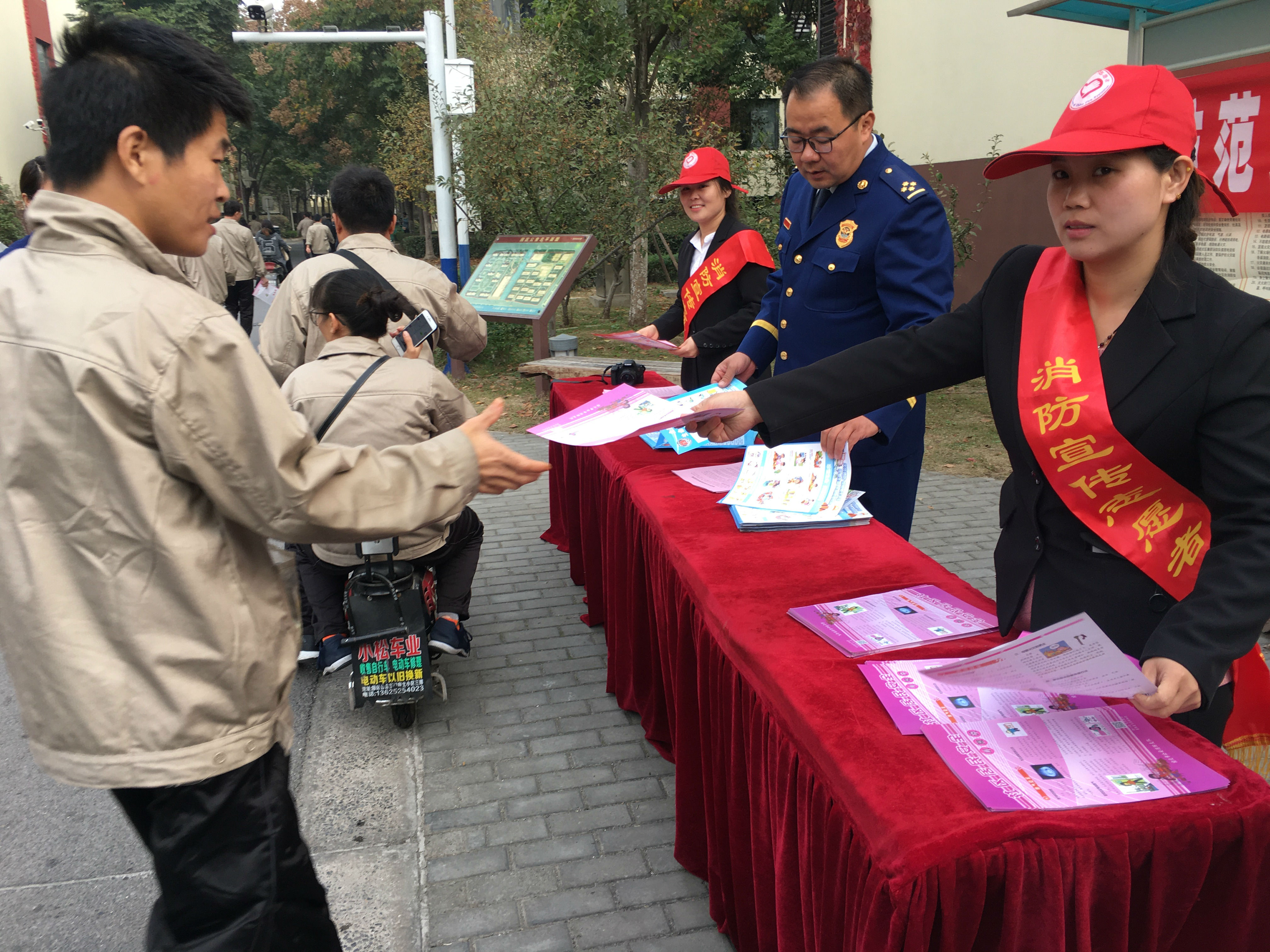 活動現(xiàn)場,懸掛了引人注目的消防宣傳標語橫幅,通過消防器材展示、油盆滅火以警示的語言提醒廣大居民關注消防安全,使更多的居民了解此次宣傳活動,從而擴大宣傳范圍。