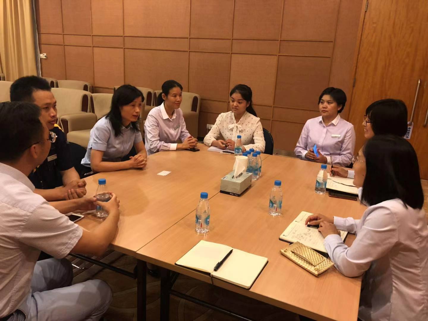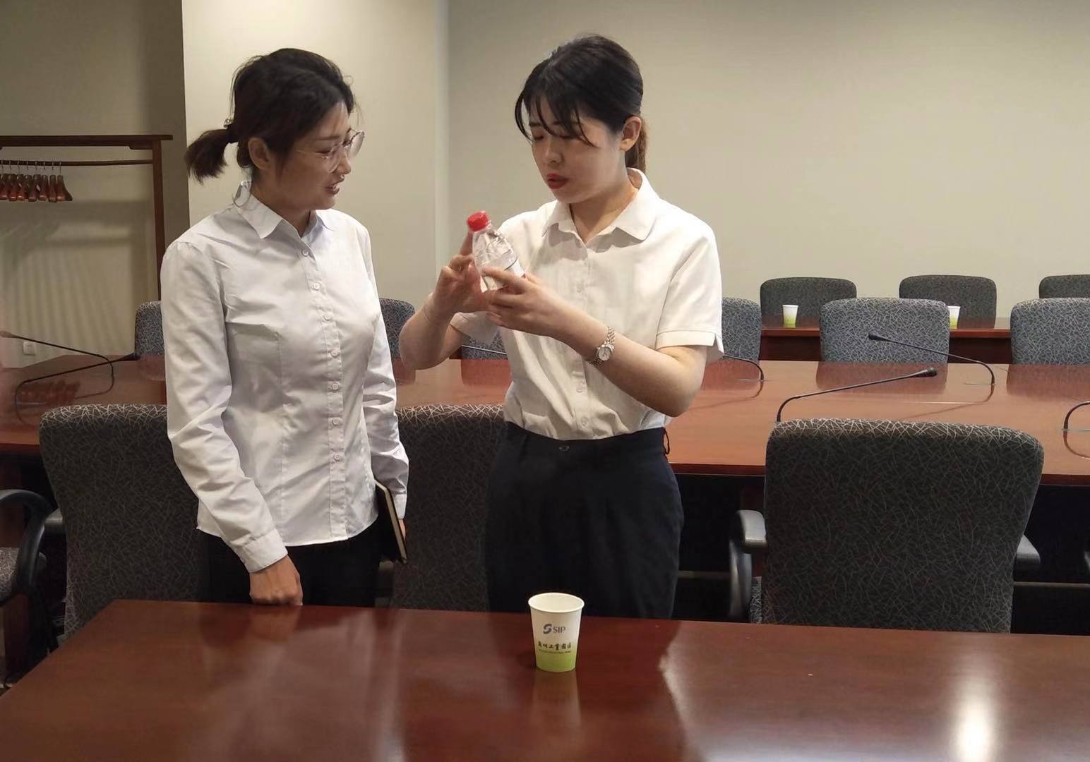 一行人兵分兩路,客服環(huán)境組跟隨蘇州工業(yè)園區(qū)環(huán)境部負(fù)責(zé)人學(xué)習(xí)會務(wù)服務(wù)的會前準(zhǔn)備工作、會后清潔工作,重點學(xué)習(xí)會務(wù)實操服務(wù),工程人員跟隨工程部學(xué)習(xí)會議廳設(shè)備配置和保養(yǎng)。