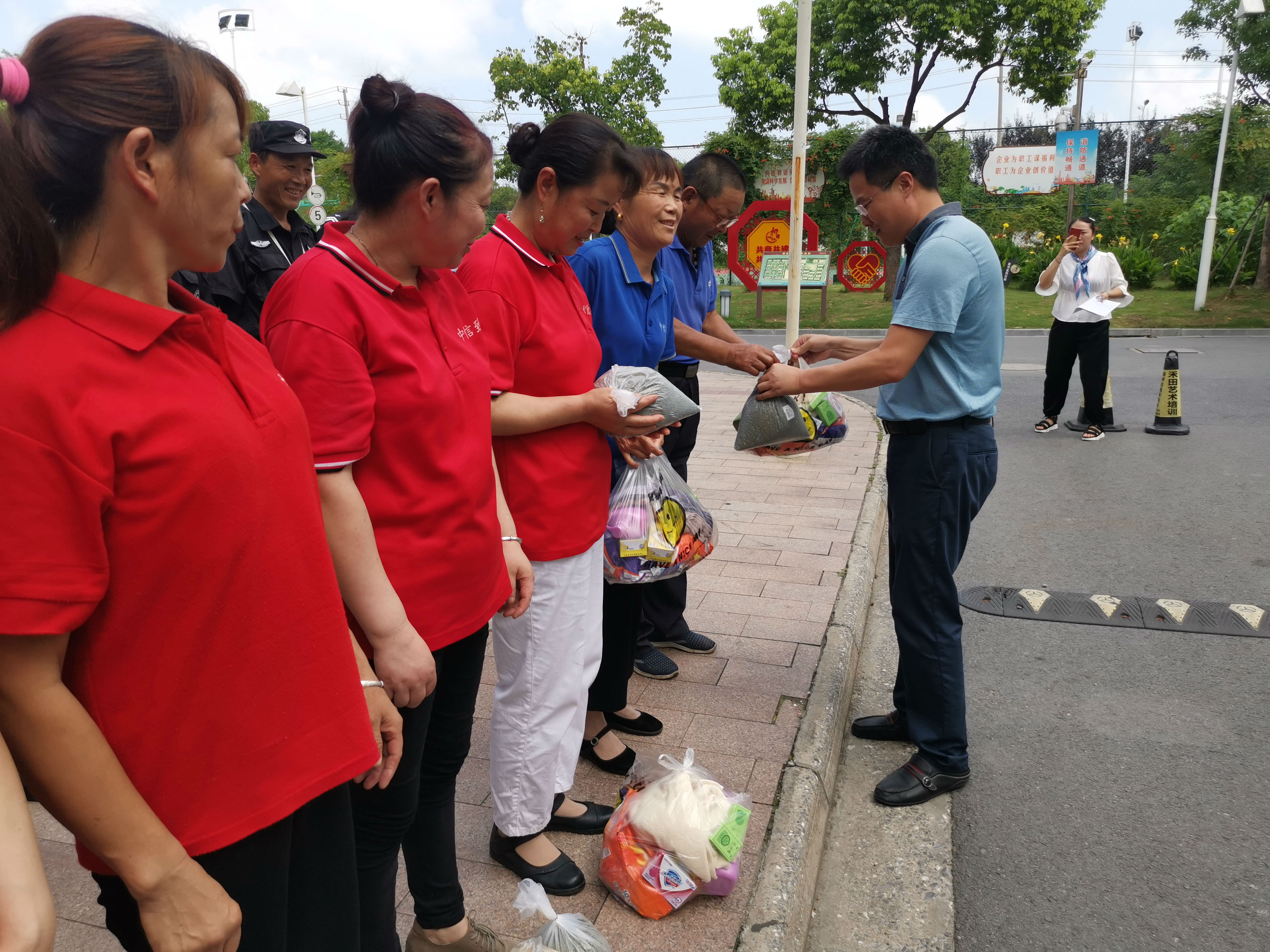 89日,公司副總經(jīng)理倪松對(duì)奮戰(zhàn)在一線的保安、保潔及綠化養(yǎng)護(hù)崗工作人員進(jìn)行了慰問(wèn),為他們送去了防暑降溫物品及公司的關(guān)懷。