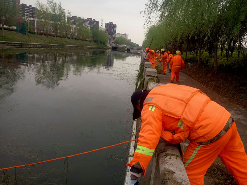 為了加快推進河道水草清理工作,確保汛期前完成水草清理工作,公司提前制定水草清撈工作方案,每天組織近30名人員分清撈和清運兩個小組對河道水草進行打撈清運,確保打撈的水草得到及時清運,截至目前,利民河、富民河水草已經全面清理結束,蔡莊大溝水草預計5月上旬全面清撈到位。