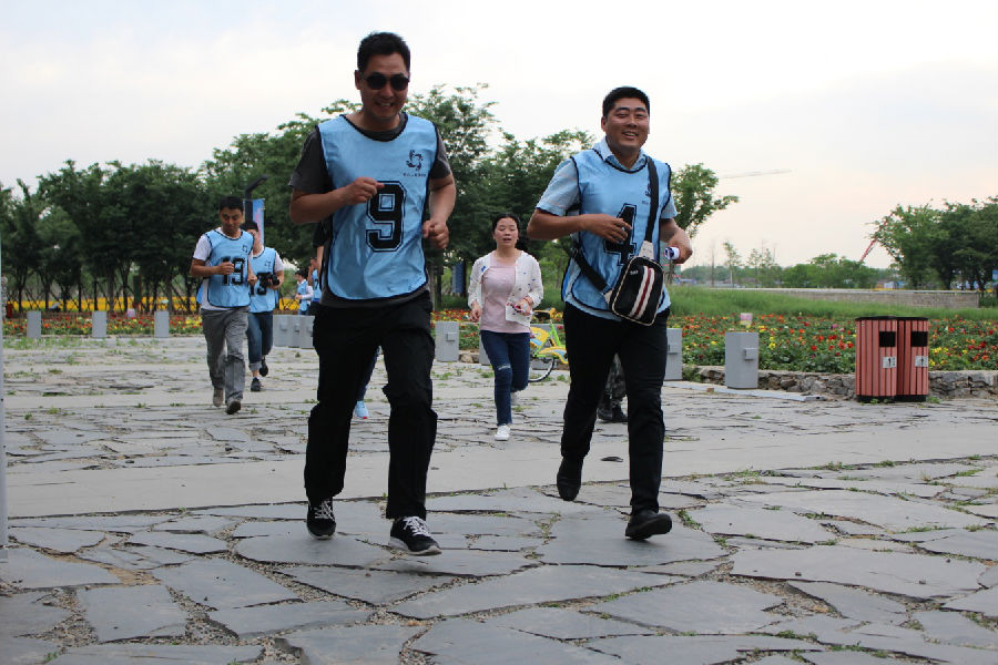 烈日炎炎,隨著“東方不敗、永遠不敗”和 “屠龍隊、專治不敗”口號吶喊,兩支斗志昂揚的隊伍踏上三臺山尋寶征途。在指導(dǎo)教官的監(jiān)督下,按照尋寶秘籍的指引,隊員們?nèi)翰呷毫Γ群笸瓿伞凹w跳躍合拍”、“征集十二個陌生人合影”、“募集五十元”等寓意深刻的團隊合作任務(wù)。尋寶全程7公里,在到達終點前路程中,隊員們體能已經(jīng)達到極限,但沒有一個人掉隊,大家相互扶持,沖刺到了終點。