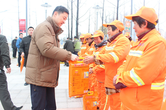 1月18日上午,園區(qū)黨工委委員、管委會副主任、規(guī)劃建設(shè)局局長許紹杰帶隊慰問了奮戰(zhàn)在一線的城市維護作業(yè)人員,向他們送上了春節(jié)的問候。