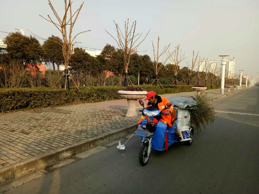 一是機械設備不斷增加,目前園區(qū)在道路保潔方面共有洗掃車4輛,濕式掃路車2輛,灑水車4輛(其中高壓沖洗車1輛、抑塵車1輛),電動掃路車1輛,全面提升了園區(qū)環(huán)衛(wèi)保潔機械化作業(yè)率;二是充分考慮大型洗掃和沖洗車輛作業(yè)盲區(qū)的不足,降低道路保潔作業(yè)對交通的影響和對作業(yè)面依賴程度,園區(qū)還針對性了引進了小型高壓沖洗車輛5臺,全面提升了園區(qū)環(huán)衛(wèi)作業(yè)盲區(qū)的保潔水平和效率;三是為每名道路保潔員配置一輛密閉式電動保潔車,加強對路面漂浮垃圾的撿拾和突發(fā)事件的處理,確保作業(yè)時間內落地垃圾和污染物停留時間不超過10分鐘,有效提升了園區(qū)動態(tài)化保潔水平。
