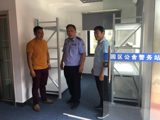 7月28日下午,園區(qū)公安分局副局長劉勇一行人來園區(qū)公舍視察公舍警務室籌建工作進展情況,物業(yè)管理部負責人范以加陪同視察。