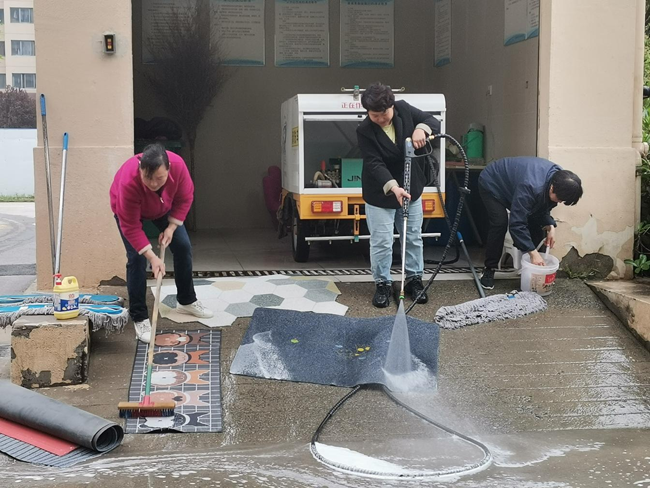 地墊雖小,但每進出家門,門口的地墊都是第一個迎接您的“家人”,它能起到清潔、防滑作用,但存在不好洗、晾曬難的問題。為解決業(yè)主的難題,5月5日,夢家園物業(yè)服務中心聯(lián)合建發(fā)公司黨支部、夢家園小區(qū)黨支部開展為居民免費清洗地毯的便民活動。