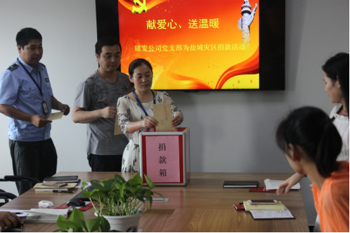 黨課結(jié)束后,黨支部組織開展“獻愛心、送溫暖,向鹽城災區(qū)捐款活動”,19名黨員、預備黨員和入黨積極分子極響應號召,踴躍參與到捐款行列中,向受災地區(qū)群眾奉獻自己的一份愛心,共獲得捐款2900元。同時,黨支部也向公司全體職工發(fā)出了向災區(qū)捐款的倡議,目前捐款工作正在進行,捐款活動結(jié)束后,獲得的款項將通過園區(qū)工委辦公室轉(zhuǎn)交鹽城災區(qū)。