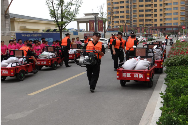 雨季即將來臨,為增強應(yīng)對汛情的反應(yīng)和處置能力,提升公司物業(yè)項目防汛應(yīng)急搶險水平,6月7日下午,公司物業(yè)管理部在園區(qū)公舍西楚金地商城舉行了防汛搶險應(yīng)急演練。演練共出動30名保安、10名消防官兵,8臺應(yīng)急搶險電動三輪車,2臺消防車,準備了沙袋120袋。