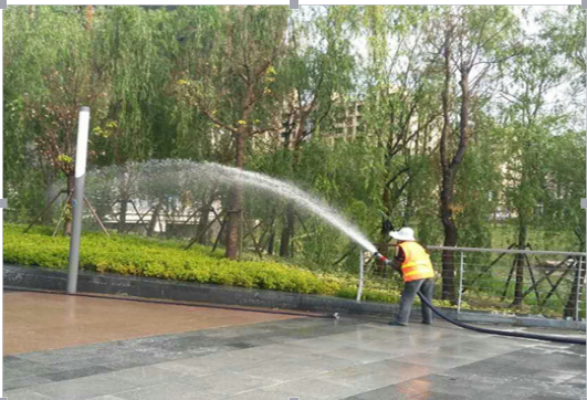 一是隨著氣溫不斷升高,為確保苗木及時(shí)得到灌溉,養(yǎng)護(hù)單位多措并舉進(jìn)行澆水灌溉,各標(biāo)段除了使用的4輛10噸水車段循環(huán)澆水外,同時(shí)利用3臺(tái)水泵進(jìn)行澆灌,全力以赴完成綠化澆水工作。