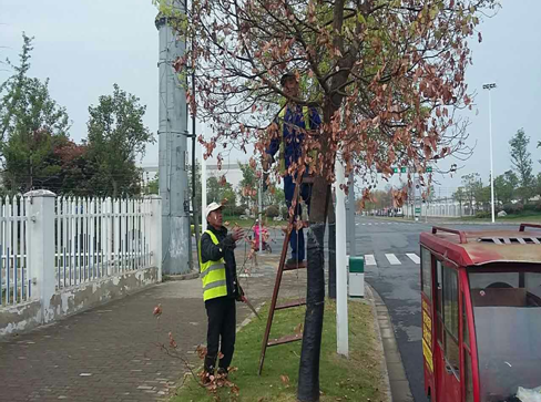 為提高園區(qū)2015年受凍香樟成活率,近期,公司組織養(yǎng)護單位對園區(qū)香樟進行一系列的復(fù)壯措施。