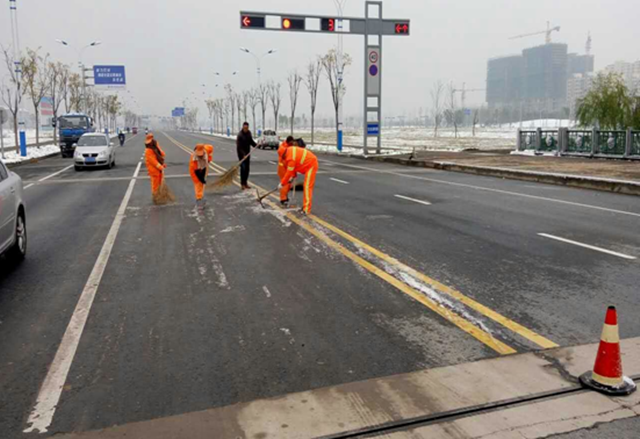 11月24日,小雪節(jié)氣剛過,宿遷便迎來了一場突如其來的小雪,雖然路面積雪不多,但伴隨著凜冽的寒風(fēng),氣溫驟降,次日早晨部分路面仍存在結(jié)冰現(xiàn)象,加上路面落葉較多,環(huán)衛(wèi)工人天未亮就走上街頭開始除雪化冰,對于他們來講,這注定又是忙碌的一天,經(jīng)過3個小時緊張而有序的忙碌,基本完成了園區(qū)主次干道的清掃工作。