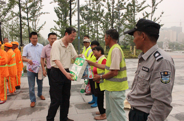 7月23日上午,園區(qū)黨工委委員、規(guī)劃建設(shè)局局長(zhǎng)周原帶隊(duì)慰問(wèn)了奮戰(zhàn)在一線的城市維護(hù)作業(yè)人員,給他們送上清涼、送上關(guān)愛。